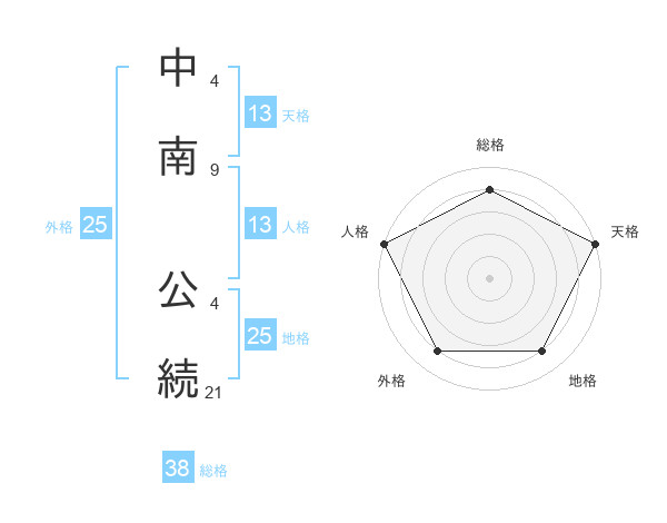 中南 公続さんの天格は13画の5点!