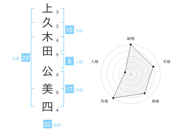 上久木田 公美四さんの外格は23画の5点!