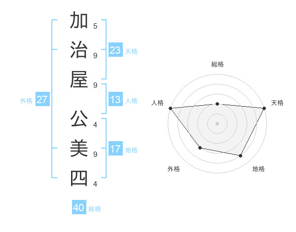 加治屋 公美四さんの天格は23画の5点!