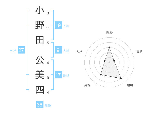 小野田 公美四さんを姓名の画数から五運を鑑定