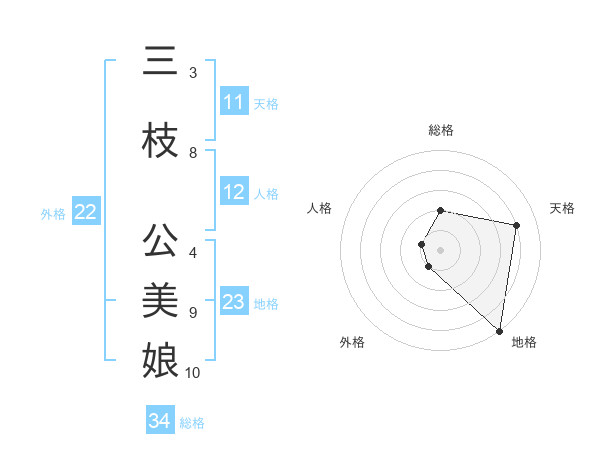 三枝 公美娘さんを姓名の画数から五運を鑑定