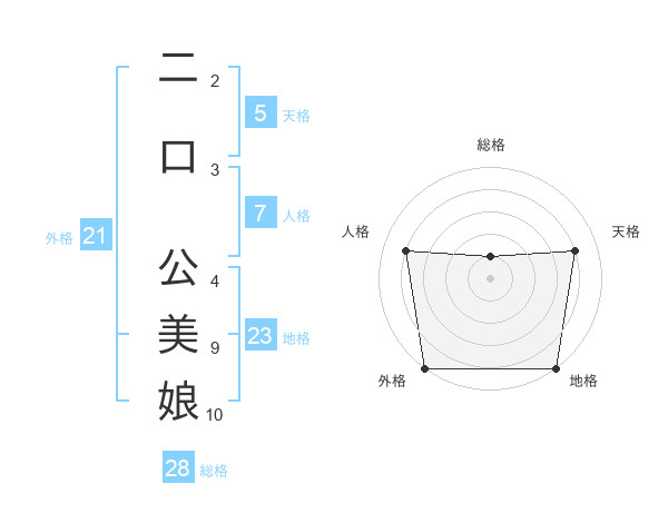 二口 公美娘さんの天格は5画の4点!