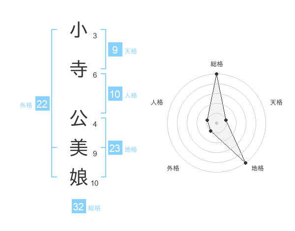 小寺 公美娘さんを姓名の画数から五運を鑑定