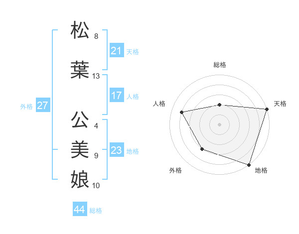 松葉 公美娘さんを姓名の画数から五運を鑑定