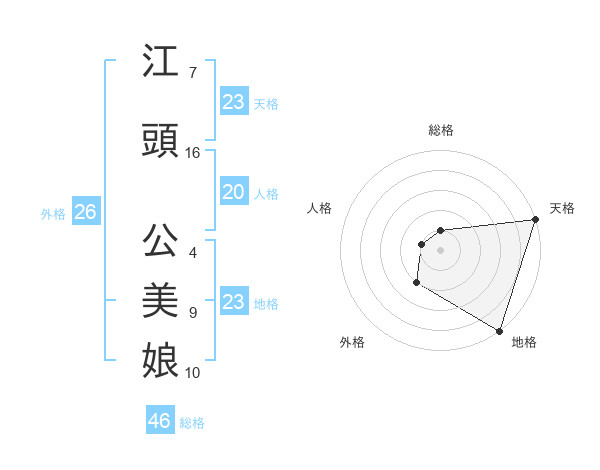 江頭 公美娘さんを姓名の画数から五運を鑑定