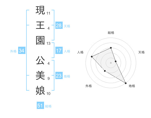 現王園 公美娘さんの総格は51画の3点!