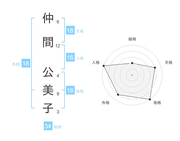 仲間 公美子さんを姓名の画数から五運を鑑定