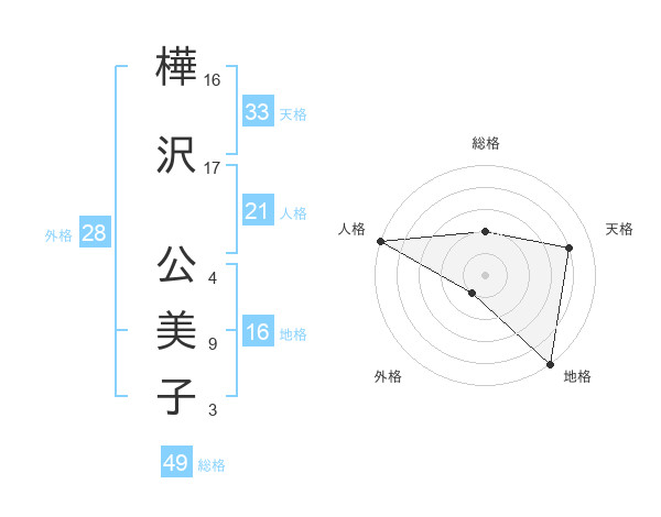 樺沢 公美子さんを姓名の画数から五運を鑑定