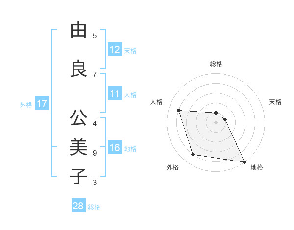由良 公美子さんの外格は17画の4点!