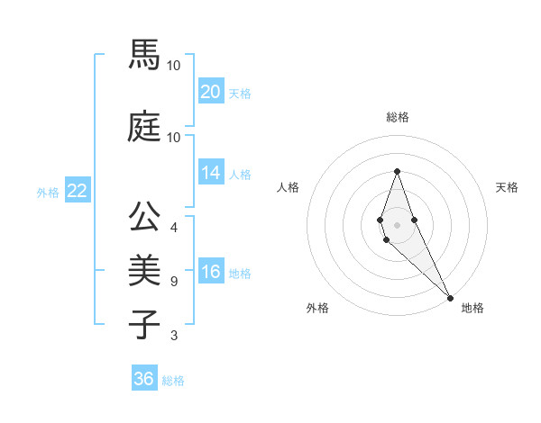 馬庭 公美子さんの天格は20画の1点!