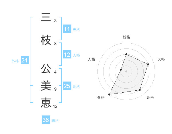 三枝 公美恵さんを姓名の画数から五運を鑑定