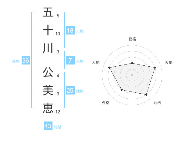 五十川 公美恵さんを姓名の画数から五運を鑑定