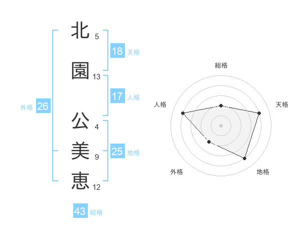 北園 公美恵さんを姓名の画数から五運を鑑定