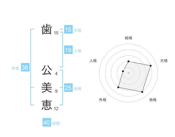 歯 公美恵さんの天格は15画の4点!