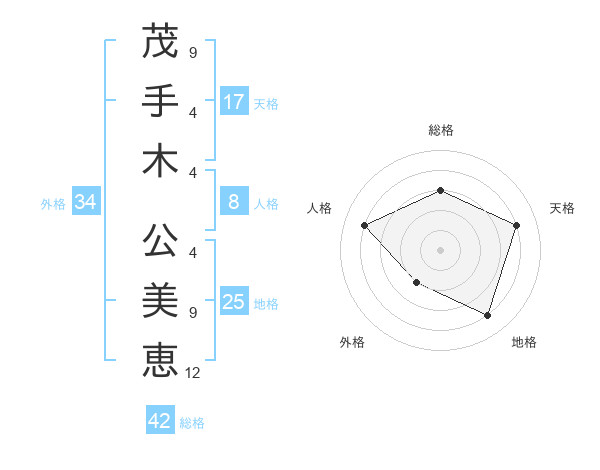 茂手木 公美恵さんを姓名の画数から五運を鑑定