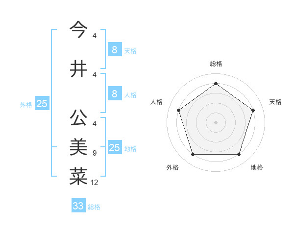 今井 公美菜さんの天格は8画の4点!