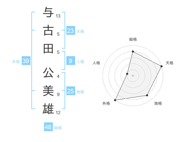 与古田 公美雄さんの外格は39画の5点!