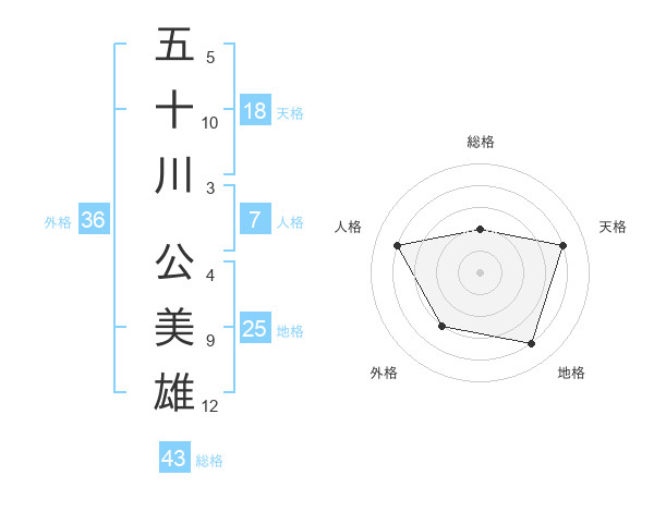 五十川 公美雄さんを姓名の画数から五運を鑑定