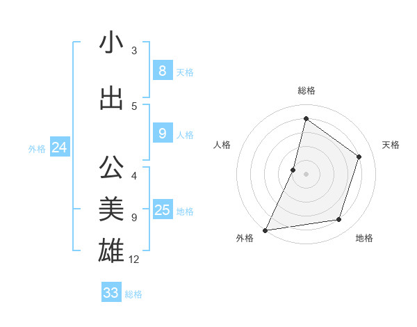 小出 公美雄さんの総格は33画の4点!
