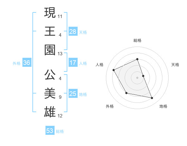現王園 公美雄さんを姓名の画数から五運を鑑定