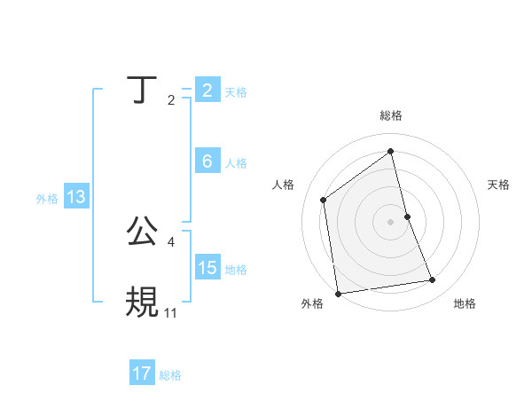 丁 公規さんの総格は17画の4点!