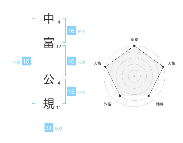中富 公規さんの外格は15画の4点!