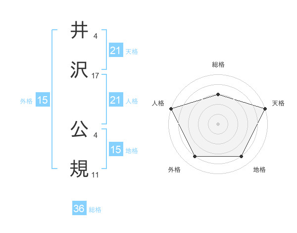 井沢 公規さんの天格は21画の5点!