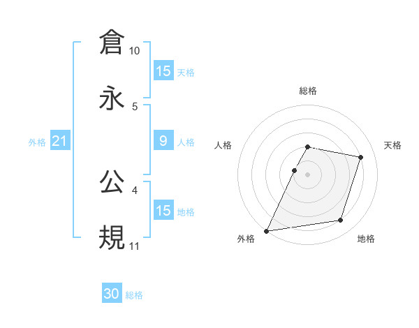 倉永 公規さんの総格は30画の2点!