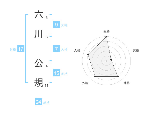 六川 公規さんの総格は24画の5点!