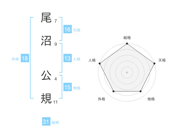 尾沼 公規さんの総格は31画の5点!