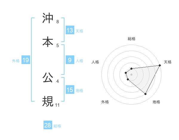 沖本 公規さんの総格は28画の1点!