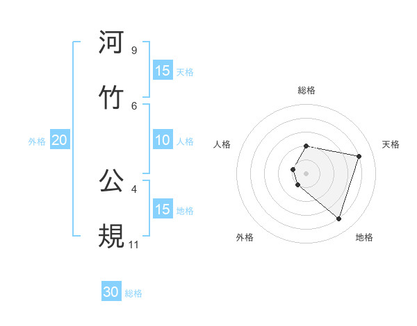 河竹 公規さんの総格は30画の2点!