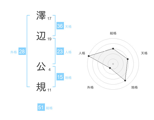 澤辺 公規さんを姓名の画数から五運を鑑定