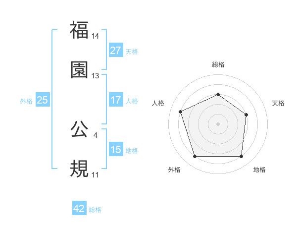 福園 公規さんを姓名の画数から五運を鑑定