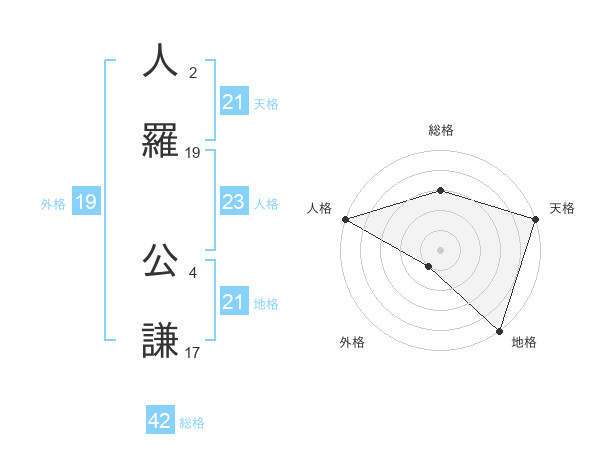人羅 公謙さんの総格は42画の3点!