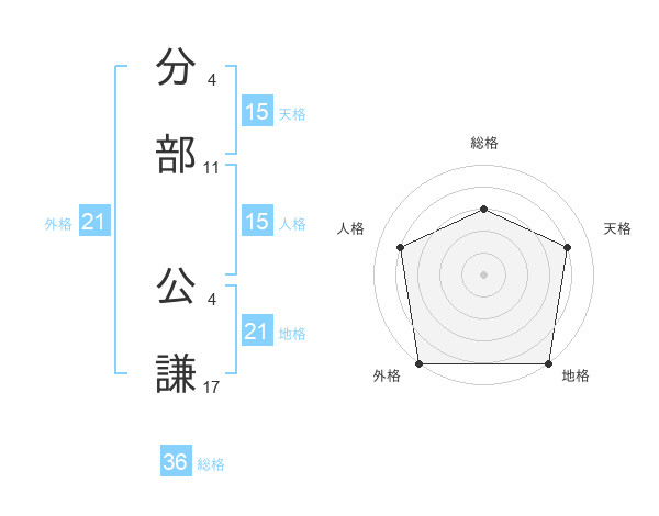 分部 公謙さんの外格は21画の5点!