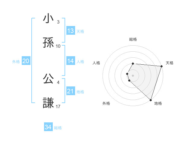 小孫 公謙さんを姓名の画数から五運を鑑定