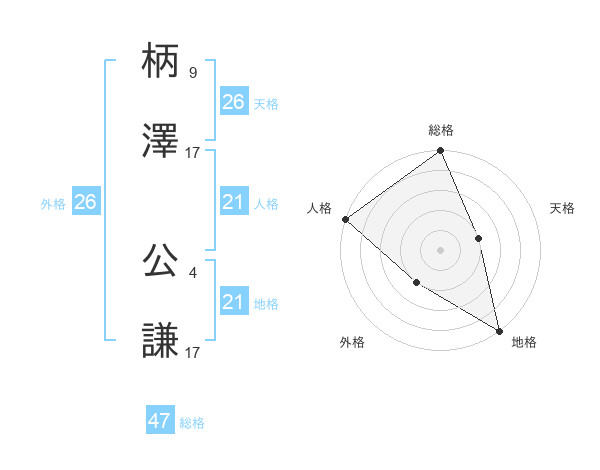 柄澤 公謙さんの総格は47画の5点!