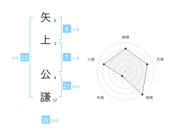 矢上 公謙さんの天格は8画の4点!