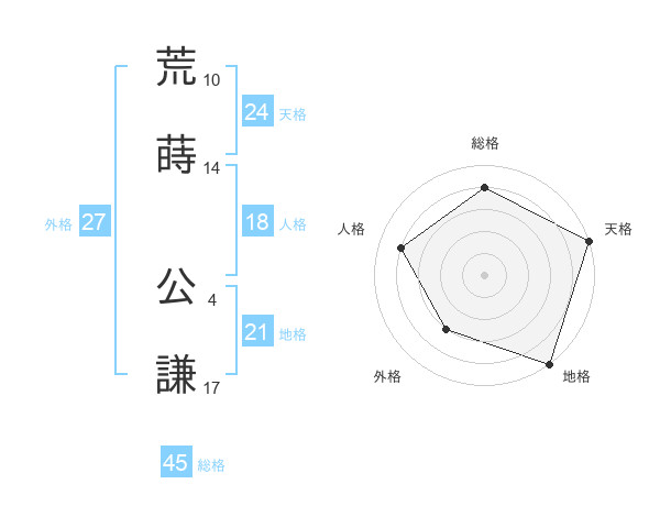 荒蒔 公謙さんの総格は45画の4点!