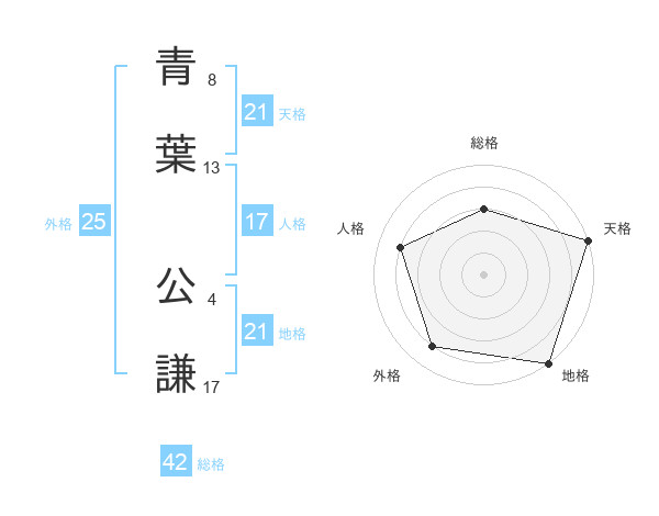 青葉 公謙さんを姓名の画数から五運を鑑定