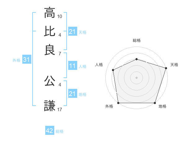 高比良 公謙さんを姓名の画数から五運を鑑定