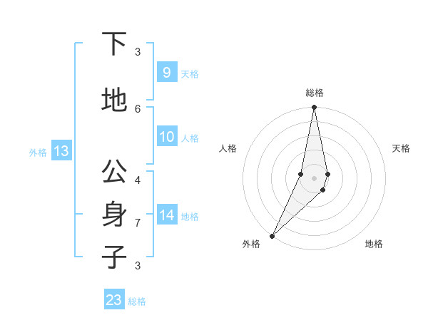 下地 公身子さんの総格は23画の5点!