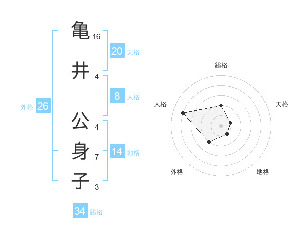 亀井 公身子さんの天格は20画の1点!