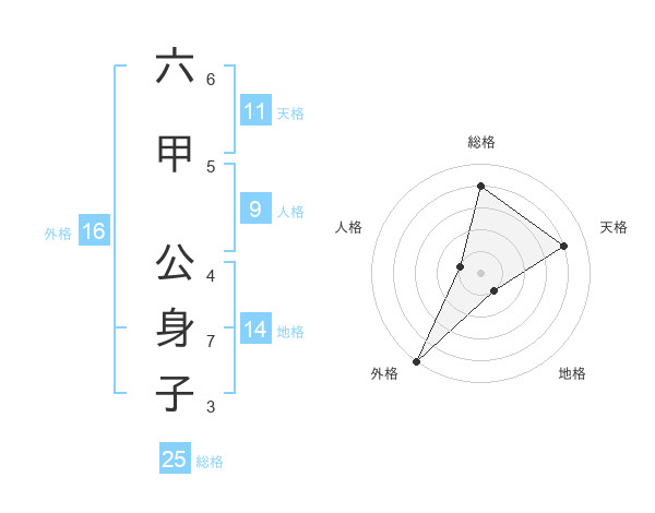 六甲 公身子さんを姓名の画数から五運を鑑定