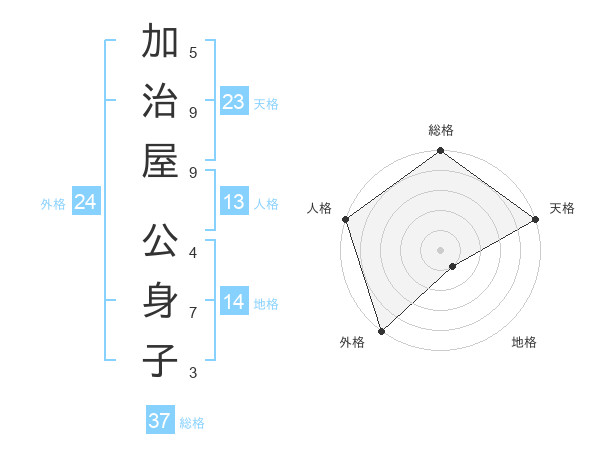 加治屋 公身子さんの総格は37画の5点!