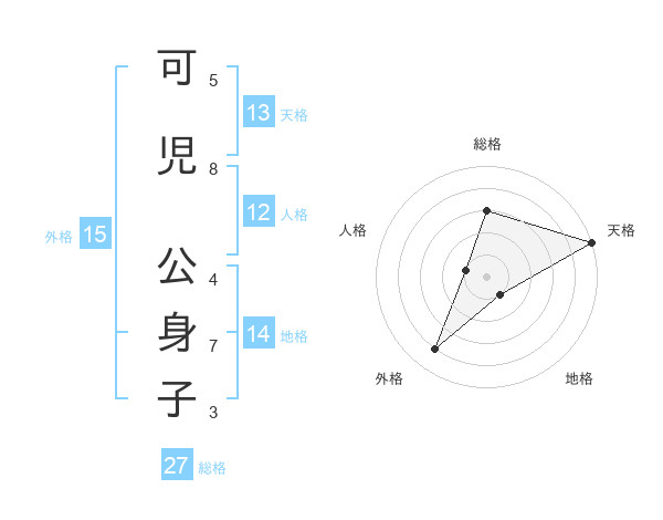 可児 公身子さんの外格は15画の4点!
