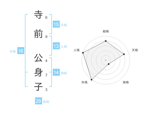 寺前 公身子さんを姓名の画数から五運を鑑定