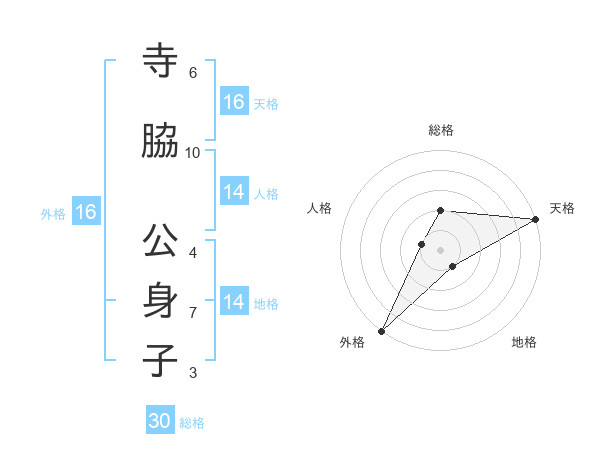 寺脇 公身子さんを姓名の画数から五運を鑑定