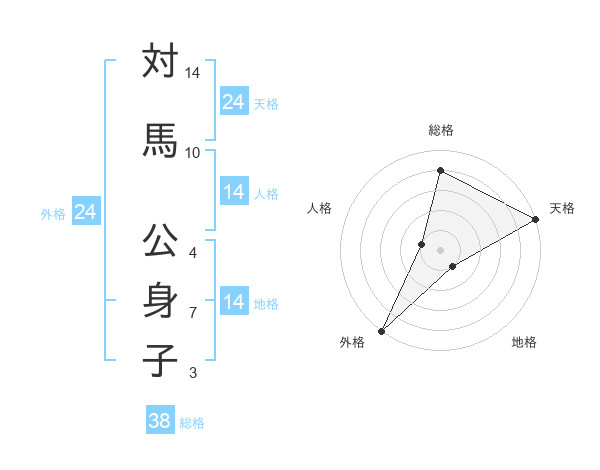 対馬 公身子さんの天格は24画の5点!